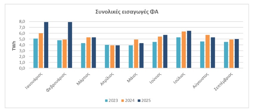 φωτοβολταϊκά στη χώρα μας στο εννεάμηνο του 2025, με την αντίστοιχη