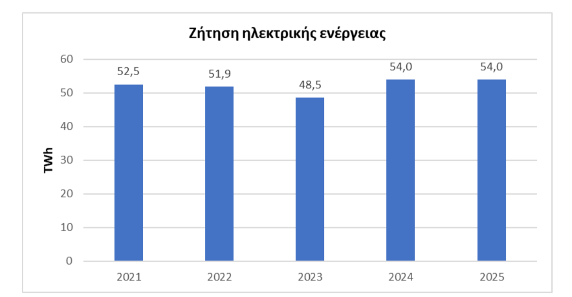 Διάγραμμα 1: Ζήτηση ηλεκτρικής ενέργειας στην Ελλάδα, 2021-2025